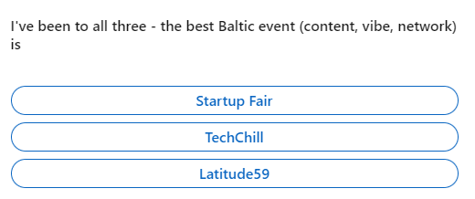- Events. Raimonds (with BADideas) compares Baltic startup events and we need your vote (if you have been to all three, ever?). Clearly no shortage of events in the region - but what if we had Baltijos Slušas instead?? Also, check these quick interviews at Startup Fair from Arunas+Martynas.