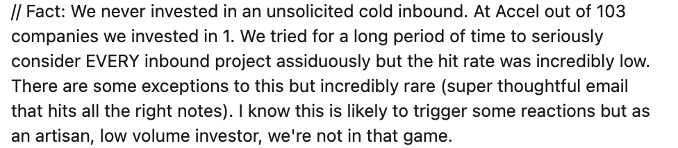 - You can still try going cold... but the odds of getting interest from a VC are very low (assuming you are targeting very busy firms)