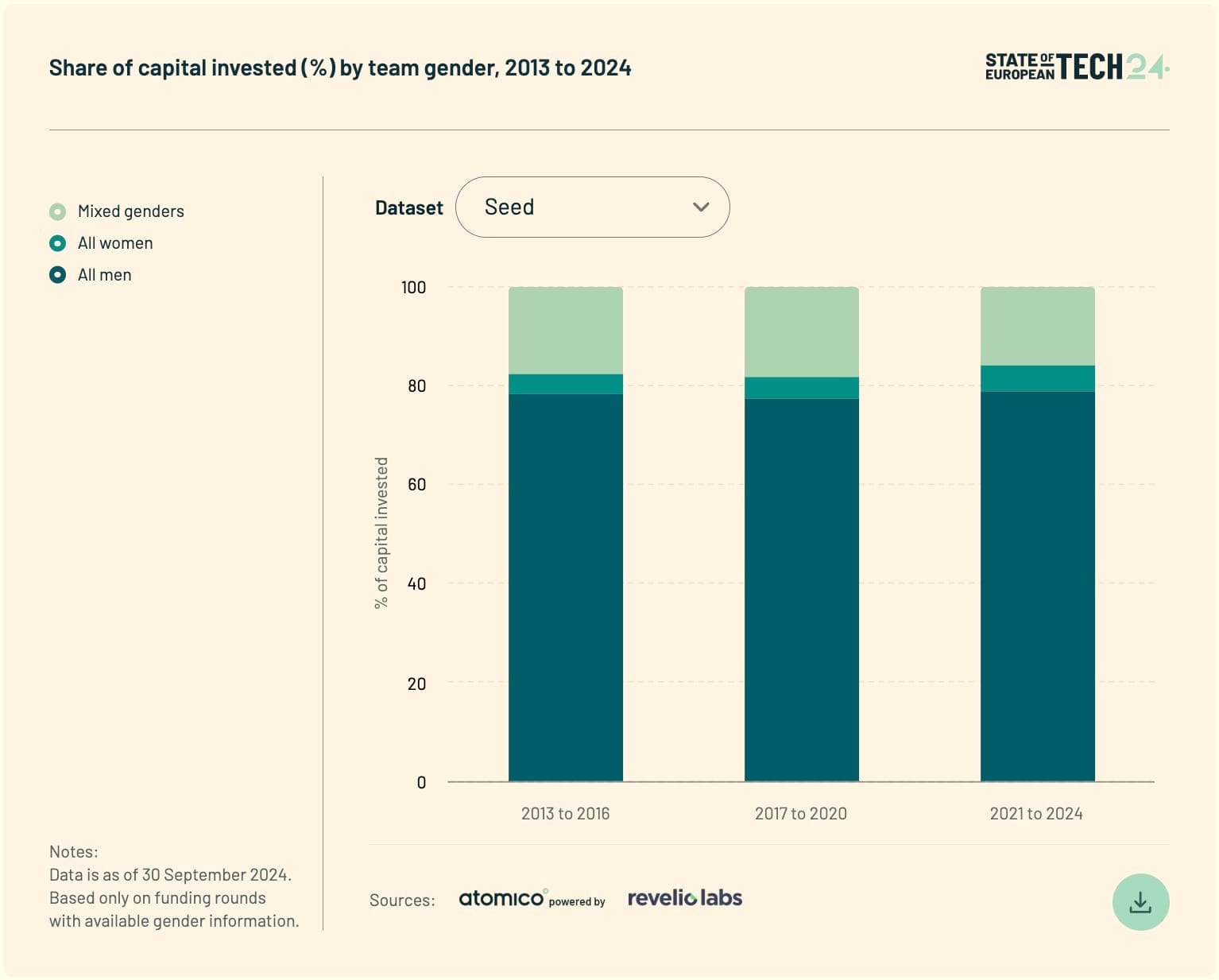 - Female founders. Mari offers free coaching. We have some phenomenal female founders in Lithuania, but the share of diverse founding teams is still small. It's shocking to see there has been almost no progress in terms of capital invested in Europe.