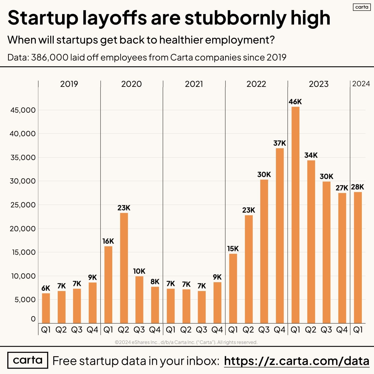 - It's not only VC draught in the US - there is also drive for efficiency, perhaps some AI effect, we have 8th consecutive quarter with >20k in layoffs (data from Carta customers)