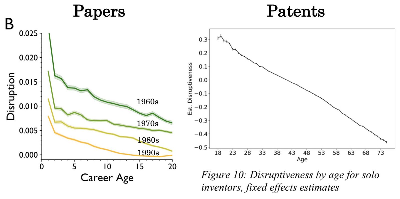 - Disruptive science is declining (just looking at 45 million papers). Matt Clancy dives deeper into the relationship between researcher age and disruptiveness. There is a certain benefit to being new in a domain.