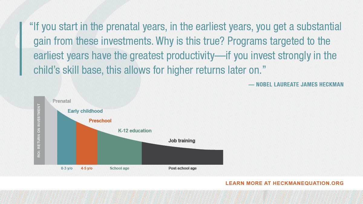 - But where is the highest leverage? Nobel laureate economist James Heckman shows how smart investments in early childhood development improve social, economic and health outcomes. But that's not only about future earnings or overall productivity.