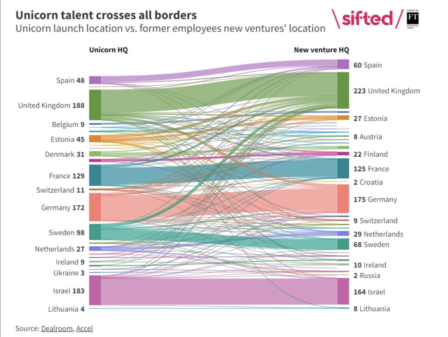 - Accell and Dealroom did some decent LinkedIn screening to uncover Europe's unicorn factories - which are unicorns themselves. The likes of Spotify, Delivery Hero, Revolut, Skype has led to 20+ new startups each, effectively compounding entrepreneurship.