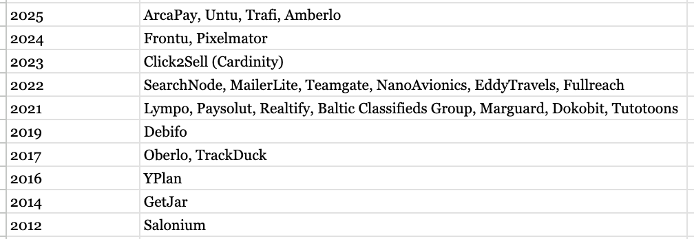 - Exits in LT tech since 2012, 26 in total. Estonia counts 60 in the same period (note that EE had 2x more venture rounds starting 2011, and up to 2019).