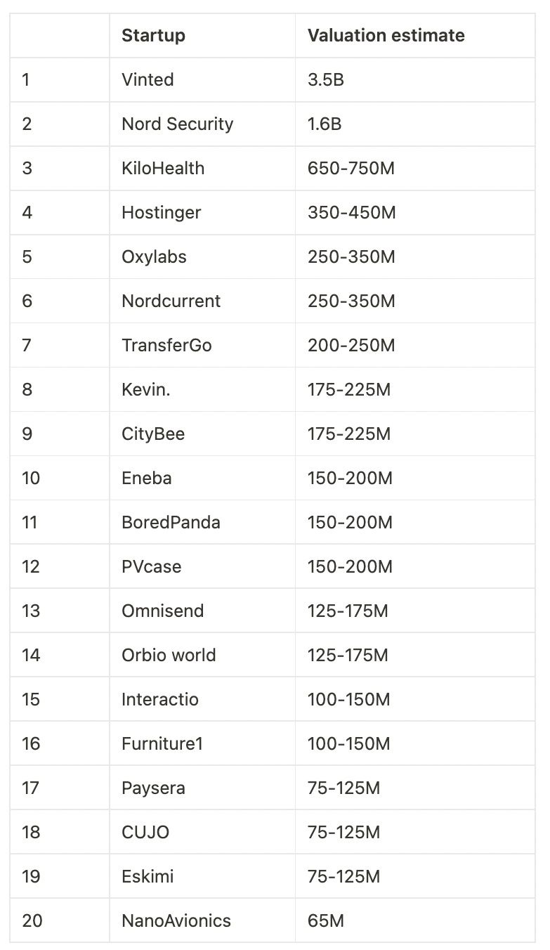 You made a list of approximate startup valuations in Lithuania. What surprised you looking at this data?