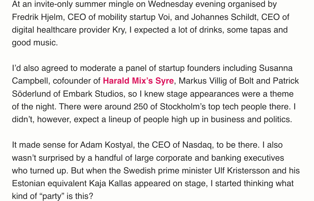 - Latvian RivalSense raised an angel round from Change Ventures, Fiedler Capital, and local business angels. RivalSense uses AI to provide weekly smart updates about selected companies – works really nicely and we'll use it for the newsletter.