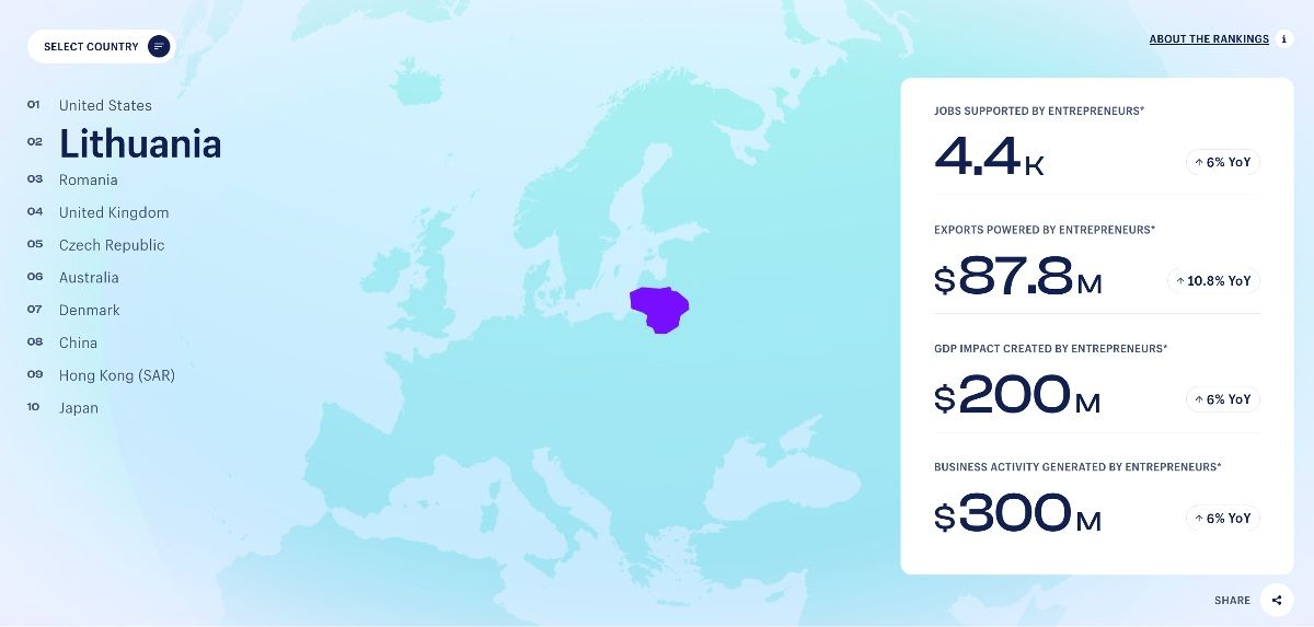 - Shopify Beta launched World's First Global Entrepreneurship Index - and ranked Lithuania #2. The index digs into GDP contribution, jobs, and business activity enabled by the Shopify platform (methodology), and surely Lithuanians run quite a bit of commerce there.