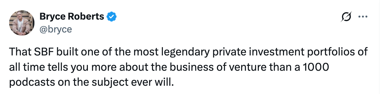 - Explaining venture capital and power law with these couple of tweets about SBF (his portfolio includes Anthropic, Cursor, Robinhood)