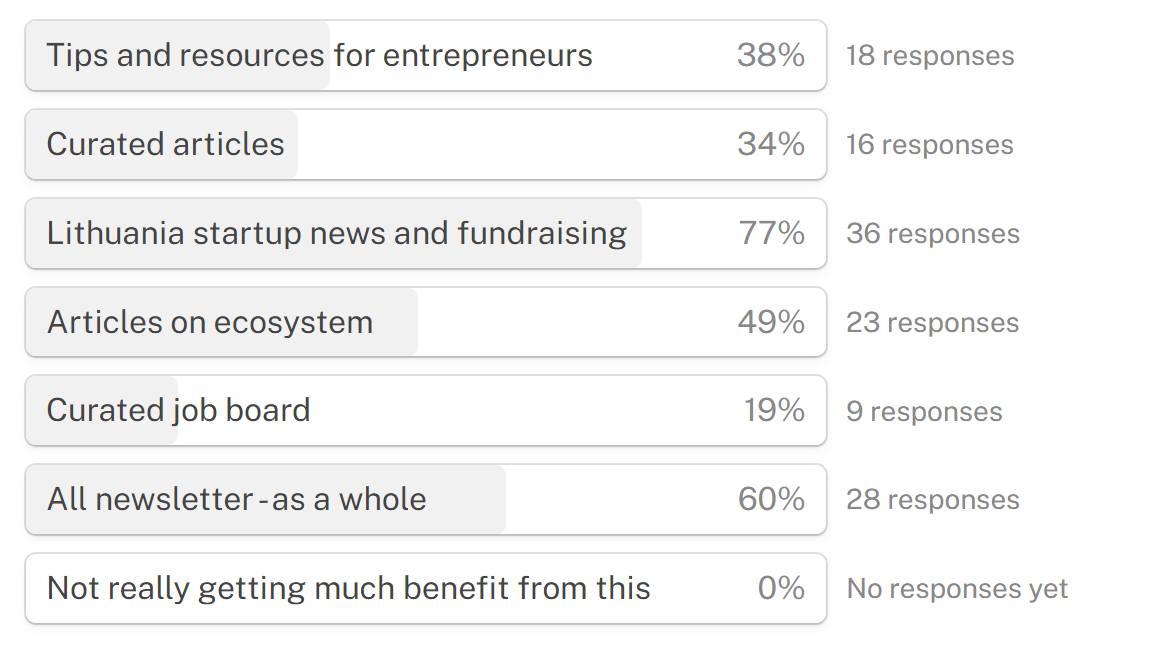 - Just keep doing what you are doing. Wouldn't change anything. I do skip all the resources for the entrepreneurs as the internet is full of this. But all news about LT startup scene is very interesting. Not sure there is another place where I could get this info in such a concentrated way.
