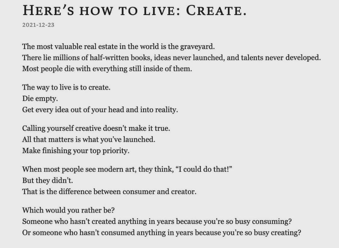 - Going back to personal. For all of us, struggling to start, Derek Sivers: