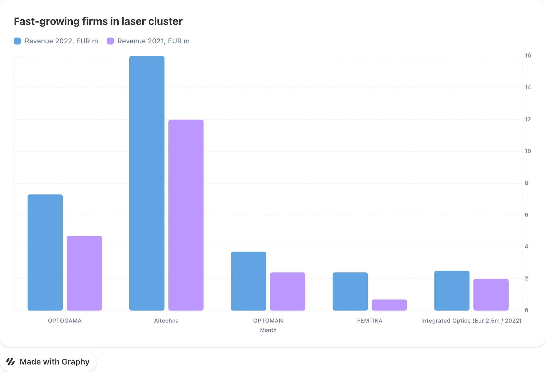 - Laser firms. Starting with niche research products, the laser industry is shifting. It took too long for the LT laser cluster to break out and spread these skills into fast-growth domains/markets, finally happening to some extent. Here are a few to keep track of - Altechna, Optogama, Optoman, Integrated Optics, Femtika. Anything missing?