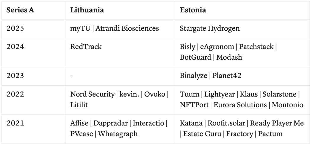 - If LT has a clear lead with bootstrapped giants, EST keeps the lead on Series A rounds (2021 to 2025 Q1 we have 21 🇪🇪 and 12 🇱🇹)
