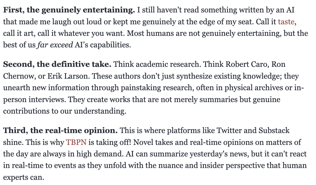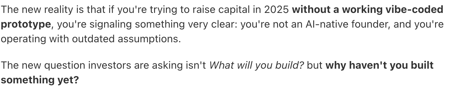 - What software business will AI kill? Surely MVPs and simple workflows are in trouble, since the cost of producing these drops to almost zero, so you'd better have some moat. What will survive? (by David Peterson)