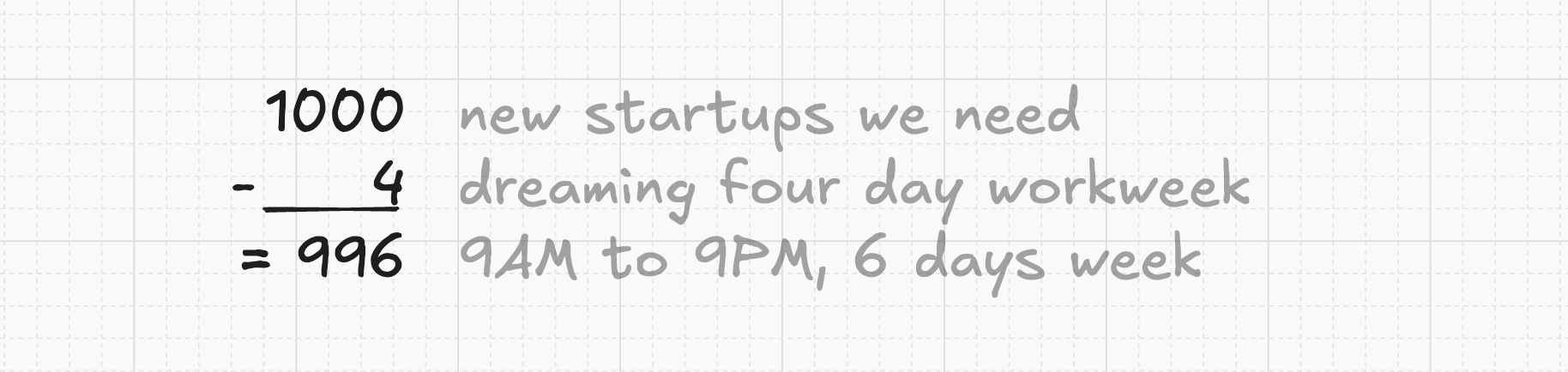 - We examined a four-day work week concept as popularised by some politicians. Our sophisticated quantitative analytical framework drives us back to... 996. More on that from Tomas and basedspace_.